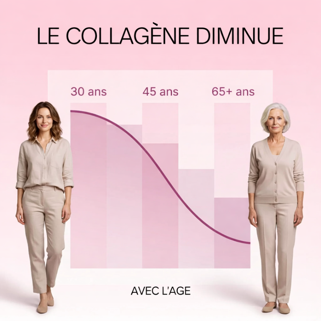 La diminution du collagène provoque des rides, une perte d'élasticité et un air fatigué qui ne correspond pas à votre état intérieur.
